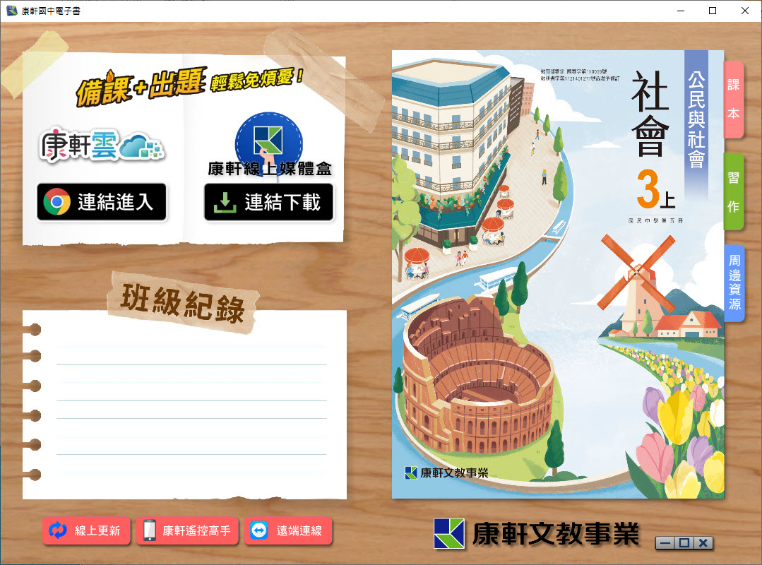 112學年上學期 國中 康軒版 公民電子書 3年級(含課本、習作含解答、教學資源)教學光碟